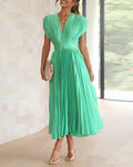 Deze mouwloze jurk met een geplooid ontwerp valt stijlvol tot op de midi-lengte en biedt zowel comfort als verfijning. Het ademende materiaal en de vloeiende stof zorgen voor een zachte aanraking en een flatterende pasvorm.