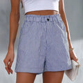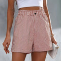 Deze shorts met hoge taille zijn perfect voor warme dagen en stijlvolle uitjes. Ze bieden een ideale mix van comfort en mode, met een trendy streeppatroon en een flatterende pasvorm.
