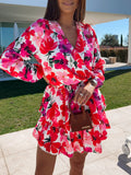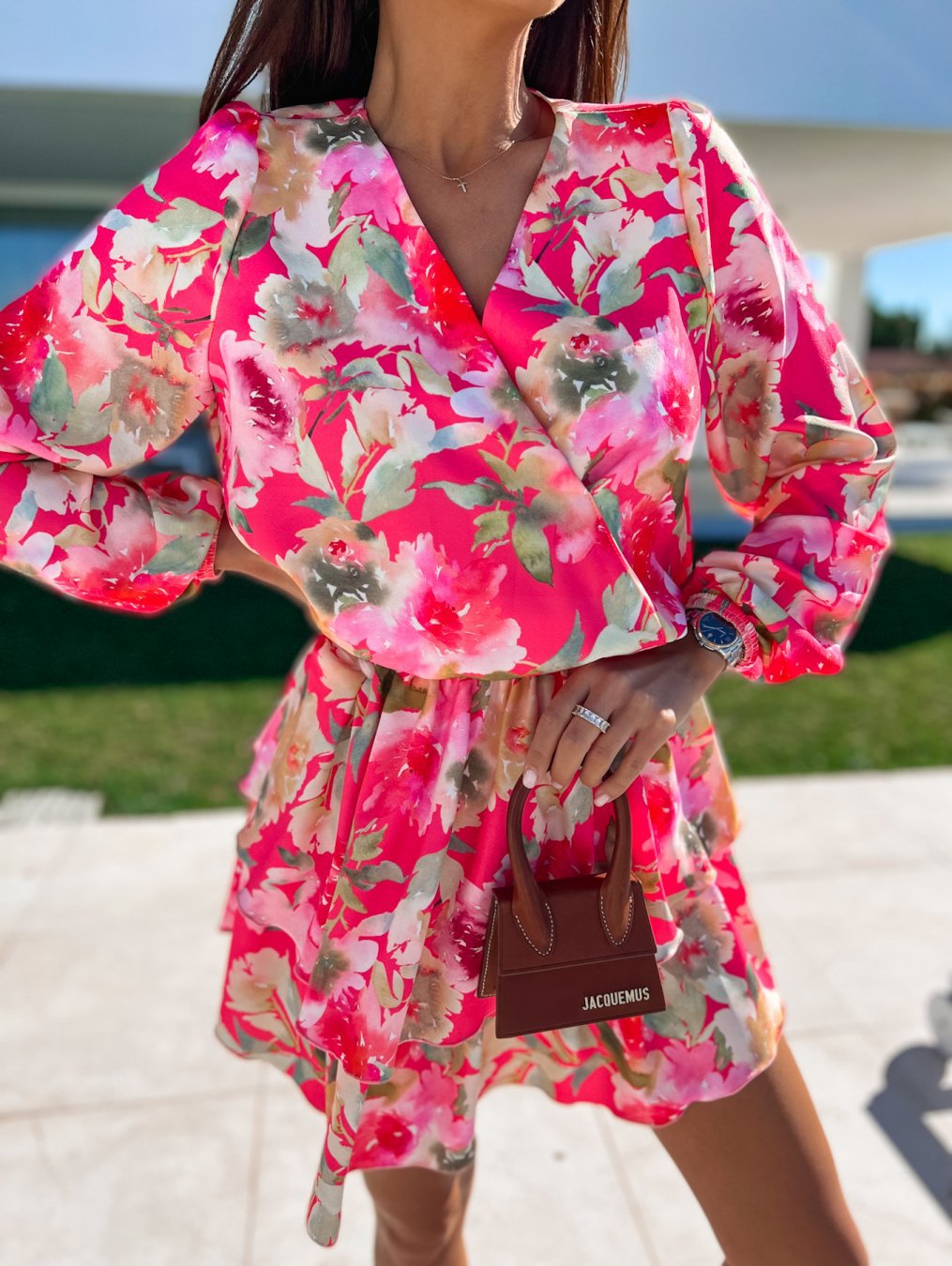 Een jurk met lange mouwen is ideaal voor elk seizoen! Deze jurk heeft een vrolijke bloemenprint, ruches, een V-hals en een elastiek in de taille. Combineer de jurk met coole sneakers of hakken en je bent klaar om de deur uit te gaan.