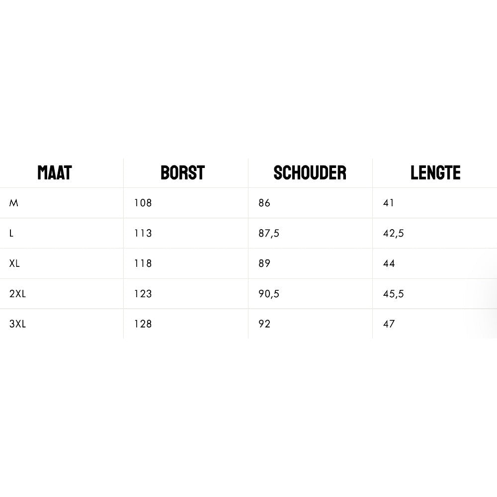 | Maat cm | Borst | Schouder | Lengte |