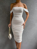 Dit jurkje is eenvoudig, maar stijlvol! De midi-jurk heeft off-shoulder mouwen, plooien, een nauwsluitende pasvorm en een transparante mesh-overlay. Het ademende materiaal draagt zeer comfortabel en is perfect voor de zomer. Draag dit jurkje met hakken en een bijpassende clutch en uw outfit is compleet.