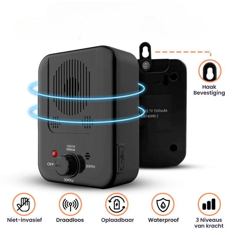 Met de nieuwste antiblaftechnologie zendt GentleWoof een volledig onschadelijk en veilig ultrasoon geluid uit dat alleen uw hond hoort als hij blaft en dat wordt uitgeschakeld zodra uw hond stopt met blaffen. Zo leert uw hond niet te blaffen naar alles om hem heen.