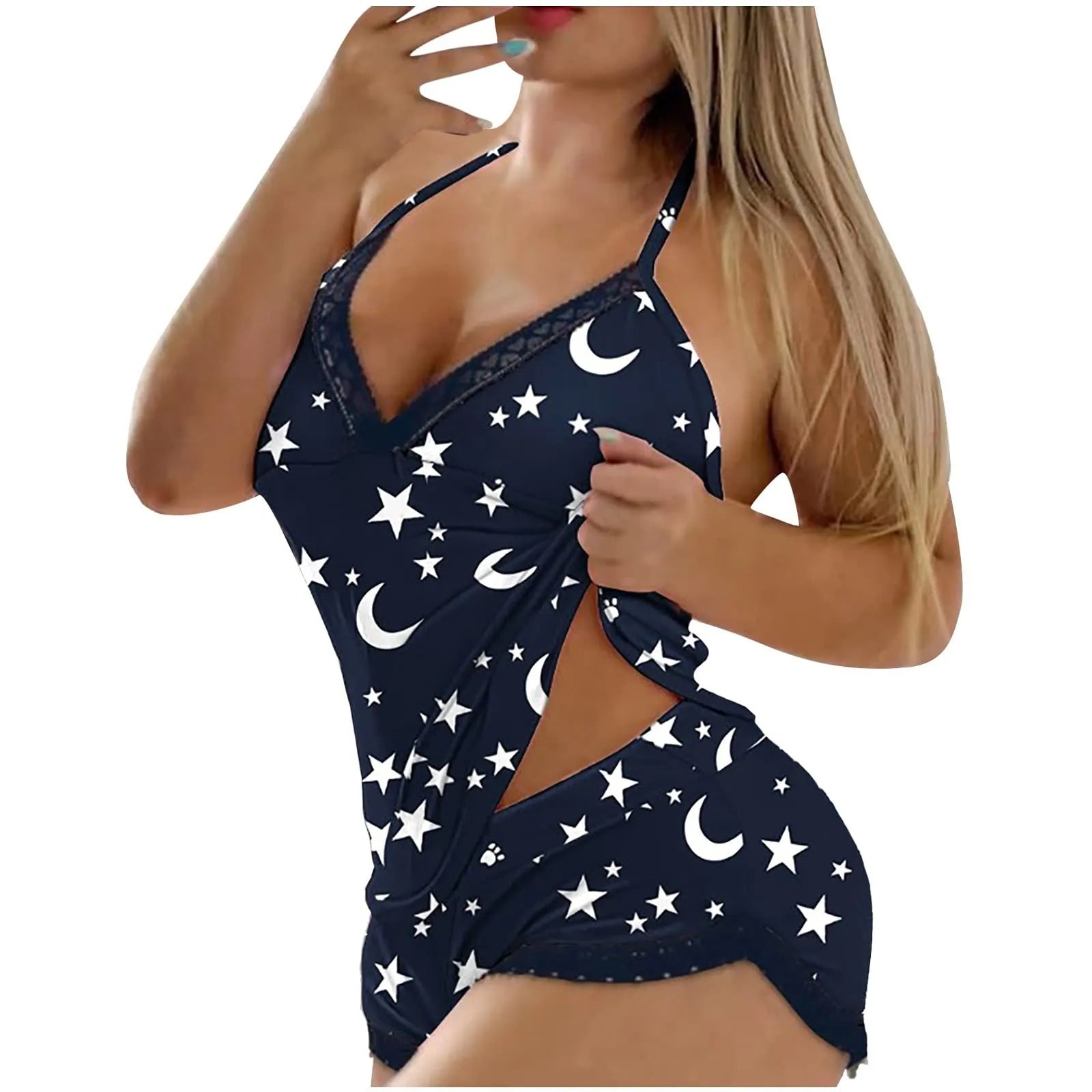 Verleidelijk ontwerp: De diepe V-hals en kanten details voegen een vleugje allure toe aan je nachtkledingcollectie.