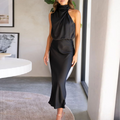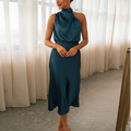 De one shoulder satijnen jurk is een veelzijdige outfit die je op verschillende manieren kunt dragen. De jurk is perfect voor een avondje uit, maar ook voor een bruiloft, gala of andere feestelijke gelegenheid.