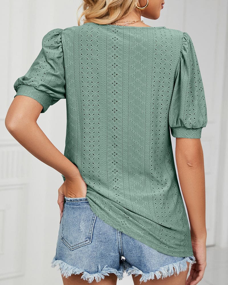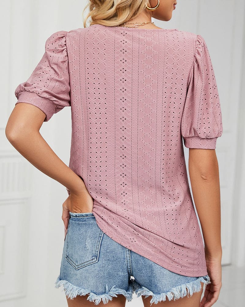 Nubil T-shirt in één Egaal Kleur met Korte Mouwen