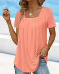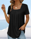 Nubil effen gekleurd T-shirt met korte mouwen en vierkante halslijn: Moderne eenvoud