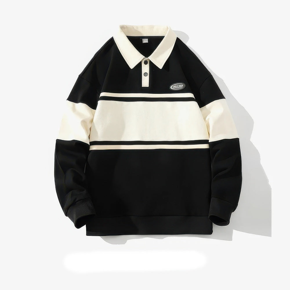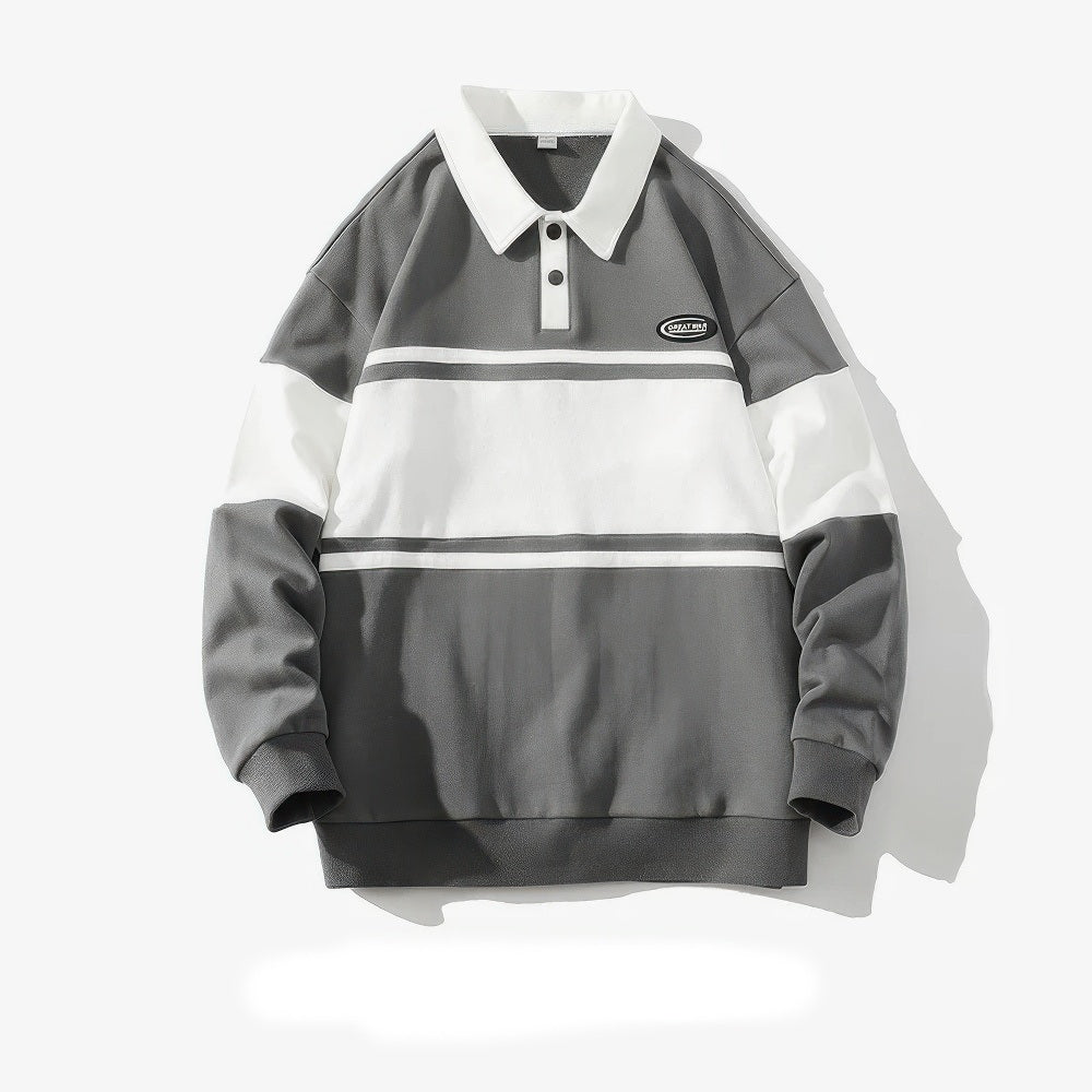 Nubil Trailblazer Heren Harajuku Gestreepte Polo met Lange Mouwen