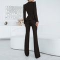 Deze combinatieset bestaat uit twee stukken. De broek heeft een hoge taille en wordt gesloten met een rits en knoop. De blazer is getailleerd en heeft een rechte kraag. De stof draagt comfortabel en de pasvorm past zich goed aan het lichaam aan.