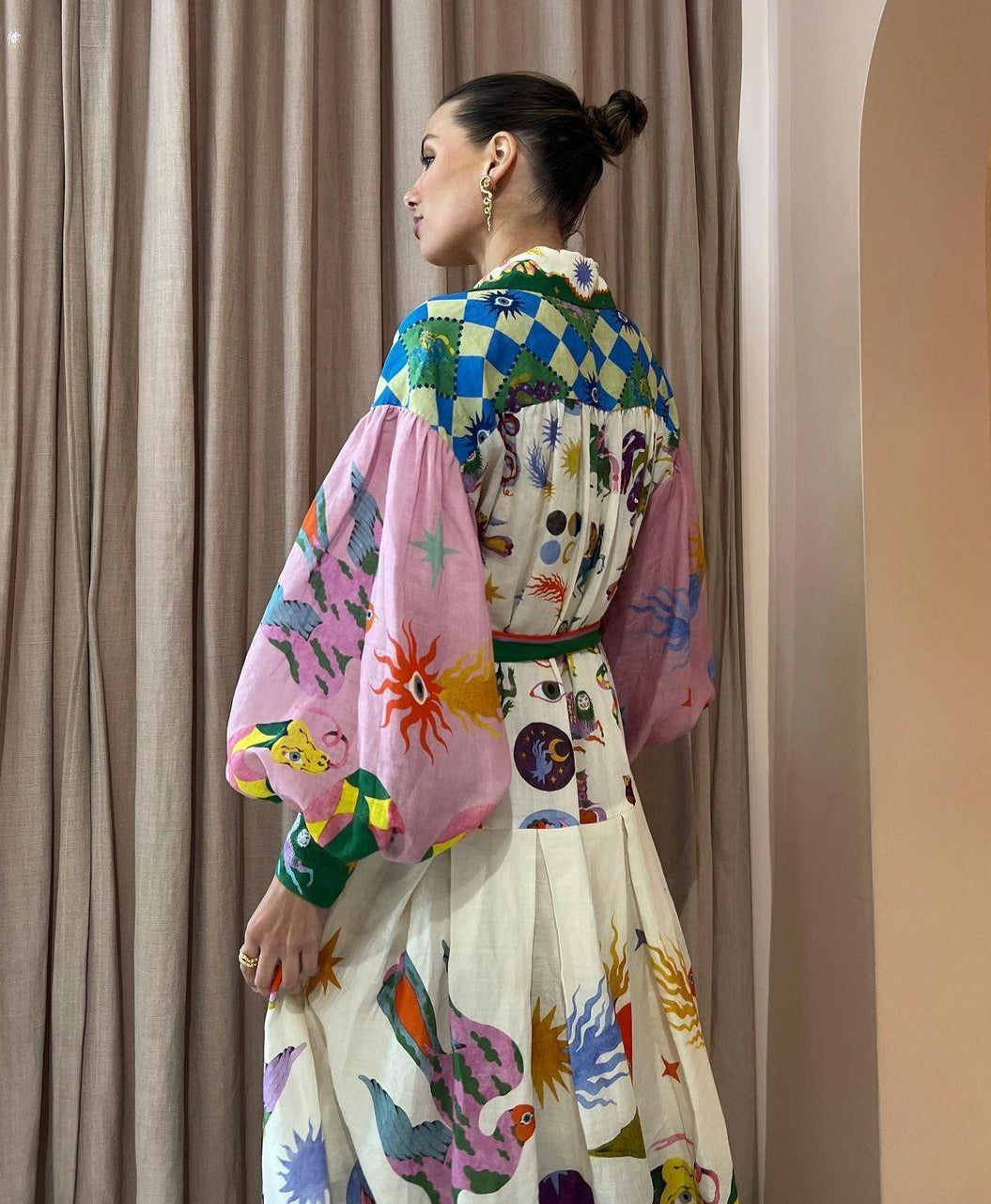 Prachtig Gekleurde Prints: De kleurrijke prints op deze jurk zijn als kunstwerken op stof. Ze voegen een vleugje levendigheid en persoonlijkheid toe aan je stijl, waardoor je opvalt waar je ook gaat.