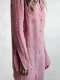 Deze eigentijdse jumpsuit is speciaal gecreëerd voor de moderne vrouw die streeft naar chique uitstraling zonder concessies te doen aan het gemak. Dankzij zijn stijlvolle eenrijige knoopsluiting en omgeslagen kraag, ademt de JOYA jumpsuit een ontspannen, toch verfijnde sfeer uit die naadloos past bij zowel lente en zomer als herfst.