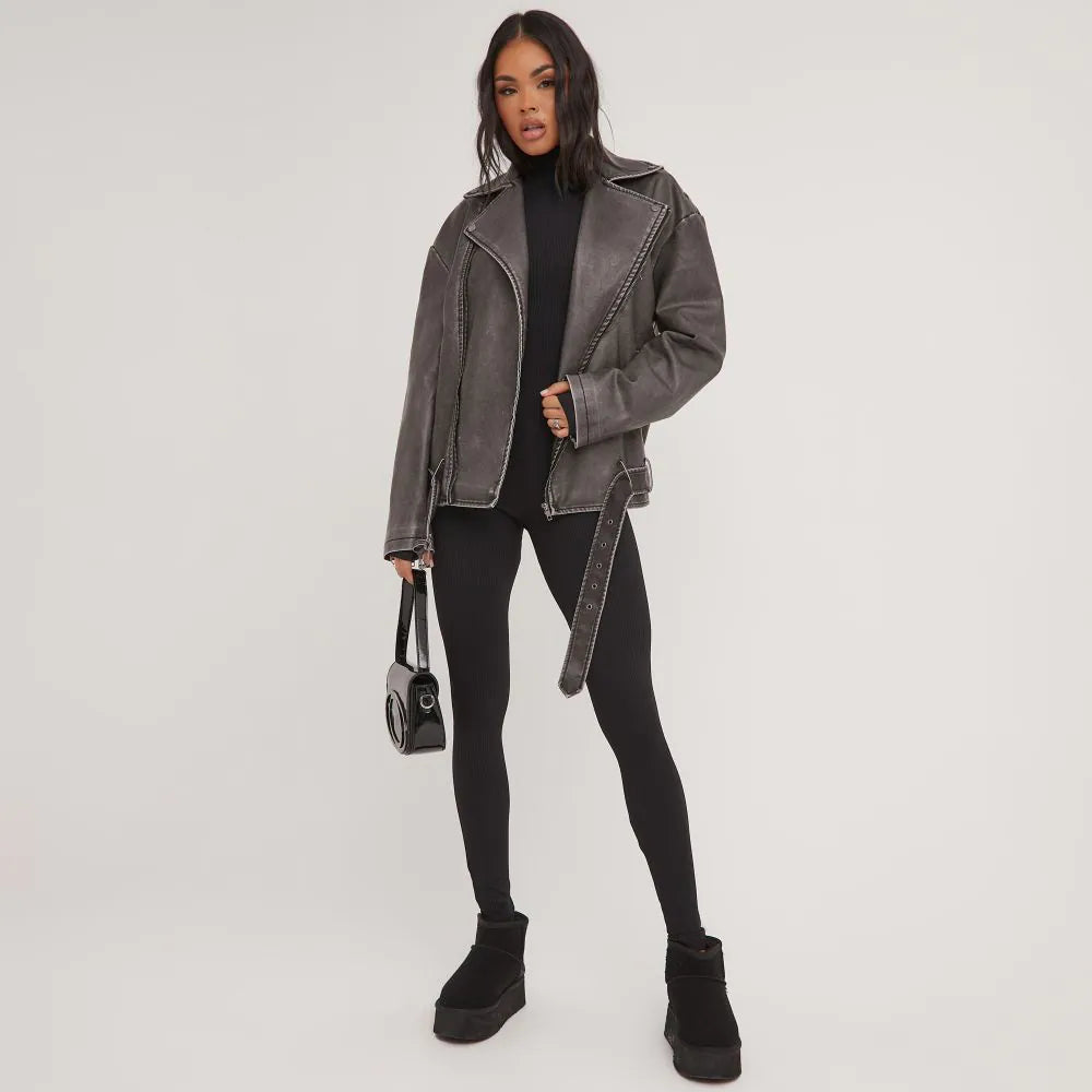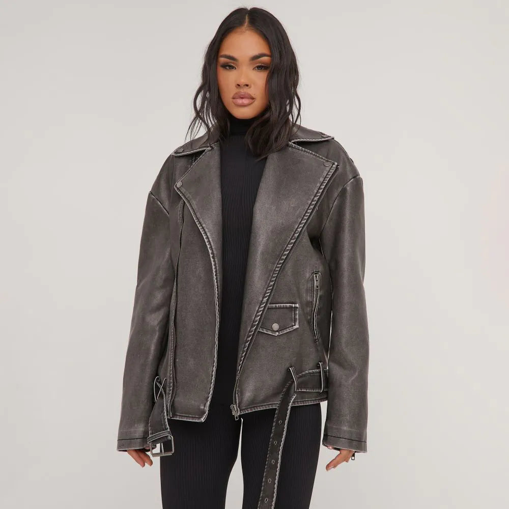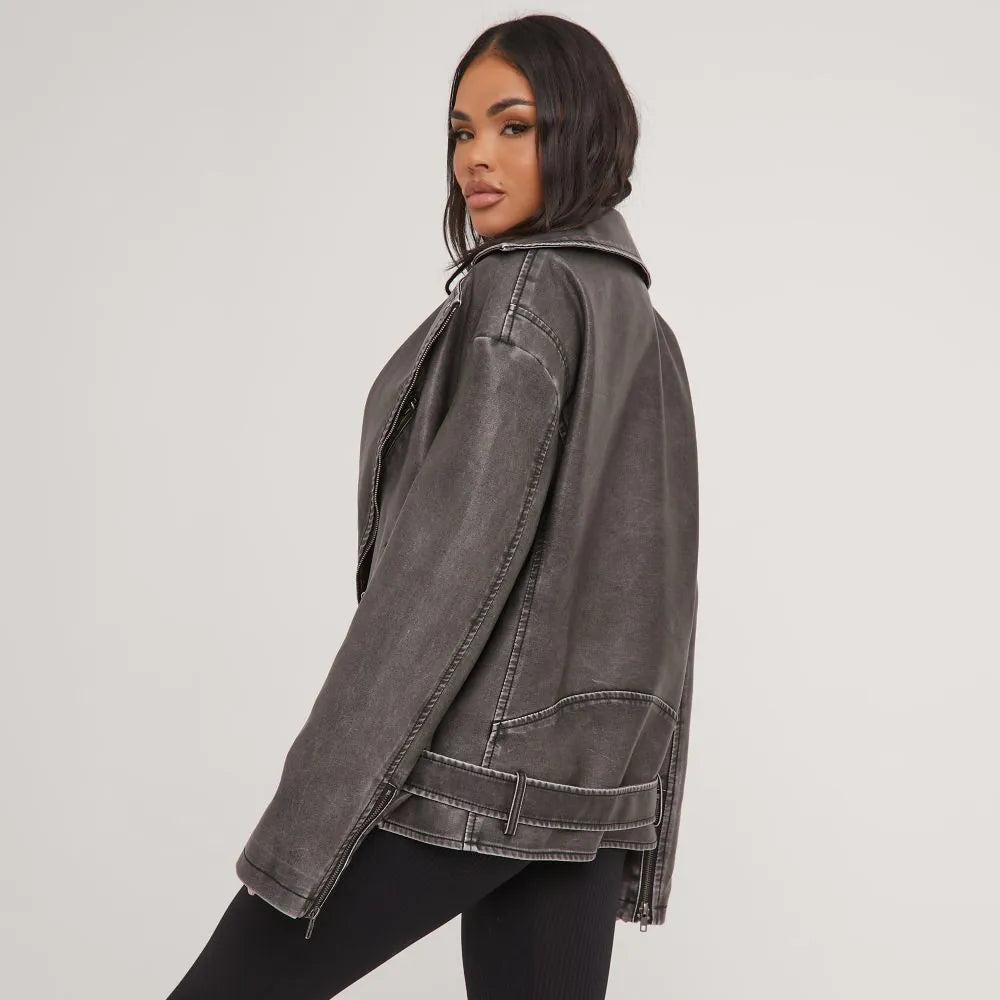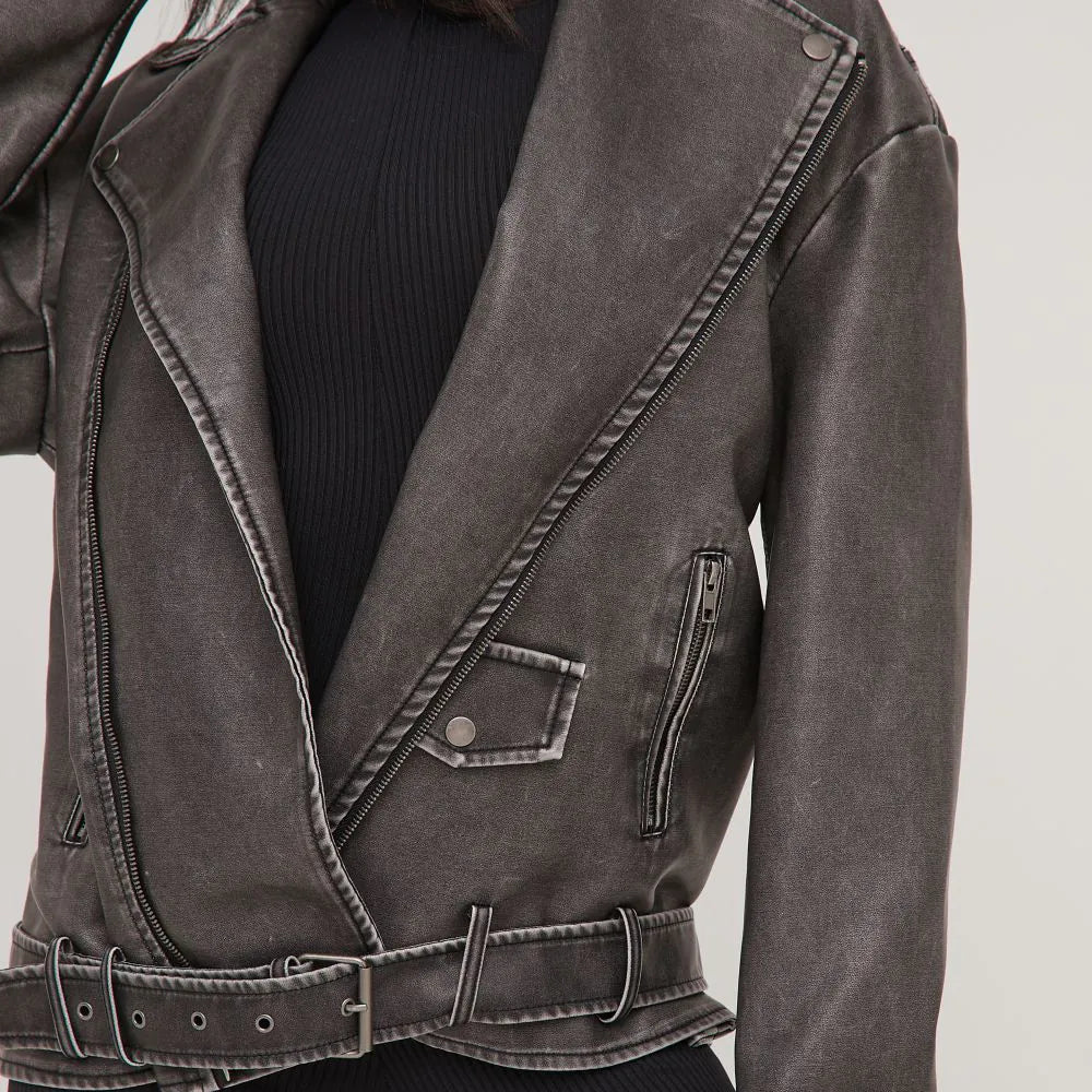 Oiseno Leren Jas met Zoomband | Rockige Stijl voor de Moderne Look
