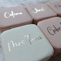 Met deze gepersonaliseerde sieradendoos verlies je nooit meer je favoriete sieraden. Het is perfect voor reizen, houdt alles veilig en voegt een persoonlijk tintje toe aan je collectie. Ideaal voor vakanties, bruiloften of gewoon dagelijks gebruik.