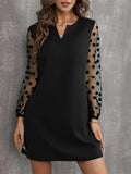 Polka Dot Notched Long Sleeve Dress - Elegant en Speels Design