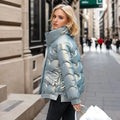 Pufferjack met rondingenpatroon en metallic look voor dames | Marshella
