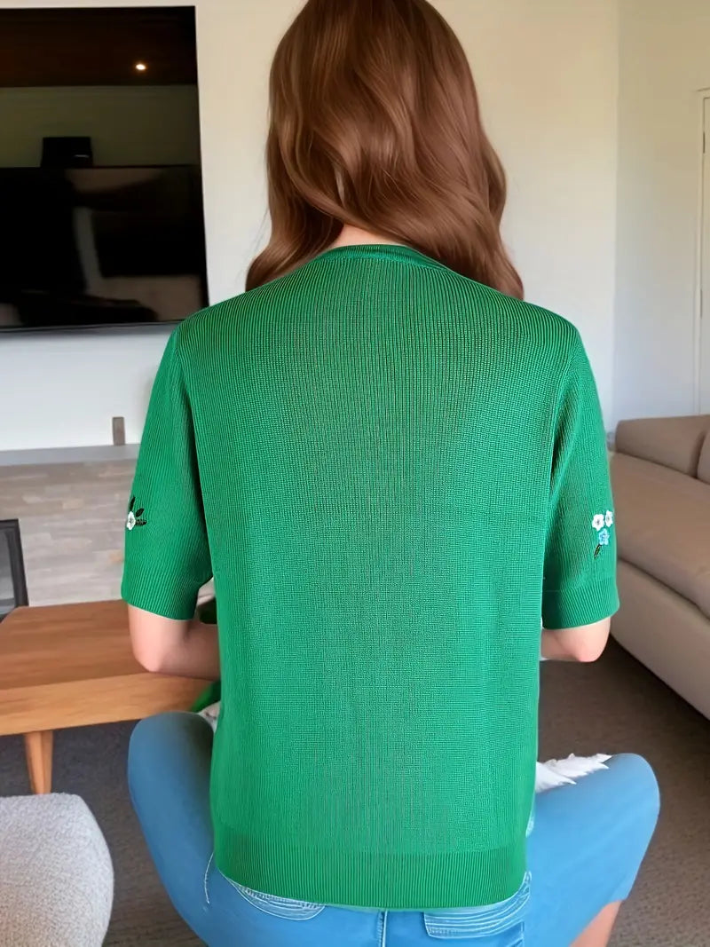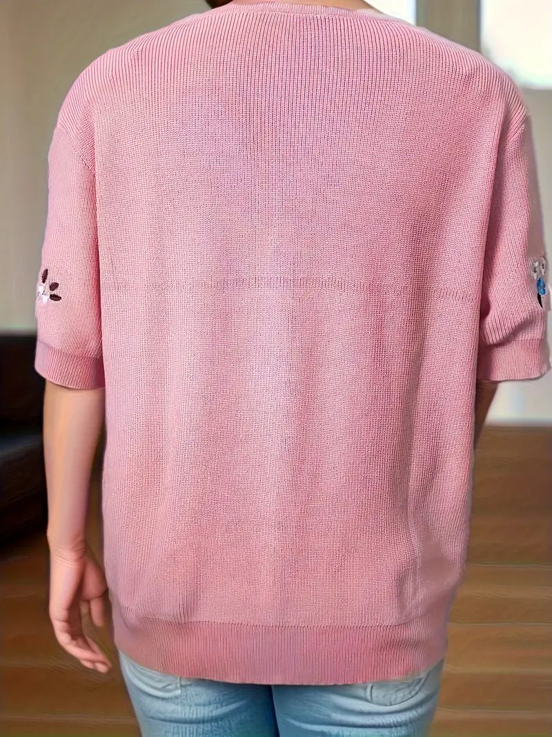 Rita - Sweater met Bloemmotief en Knoopsluiting voor Elegante Look