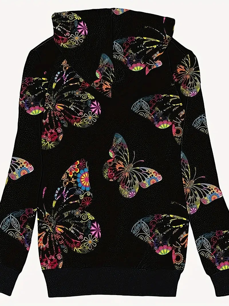 Het zachte fleece aan de binnenkant zorgt voor extra warmte, terwijl het kleurrijke vlinderpatroon een speelse en modieuze touch toevoegt aan je outfit.
