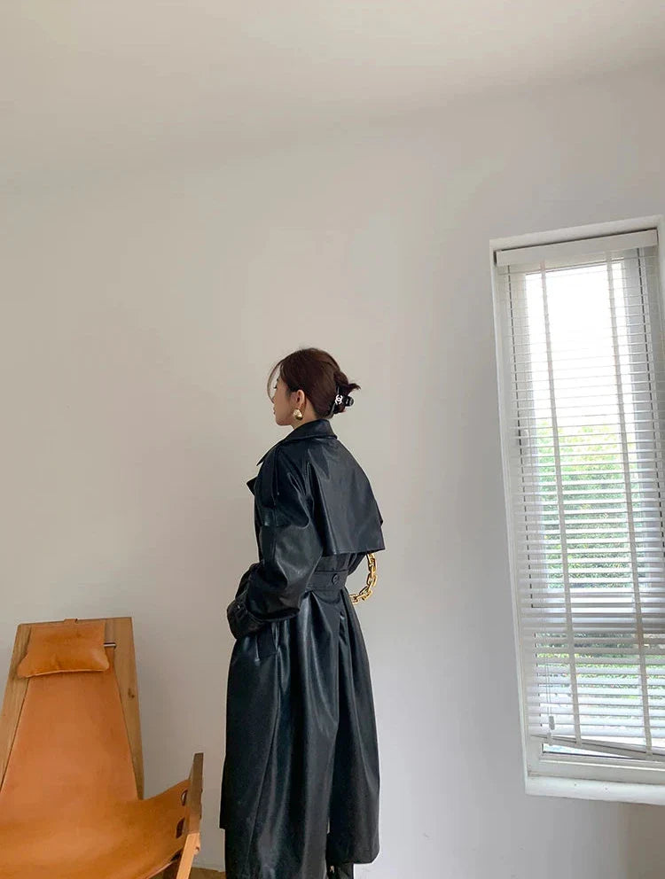 Deze elegante jas biedt een tijdloze lederlook die wordt geaccentueerd door stijlvolle manchetten met riemdetails.