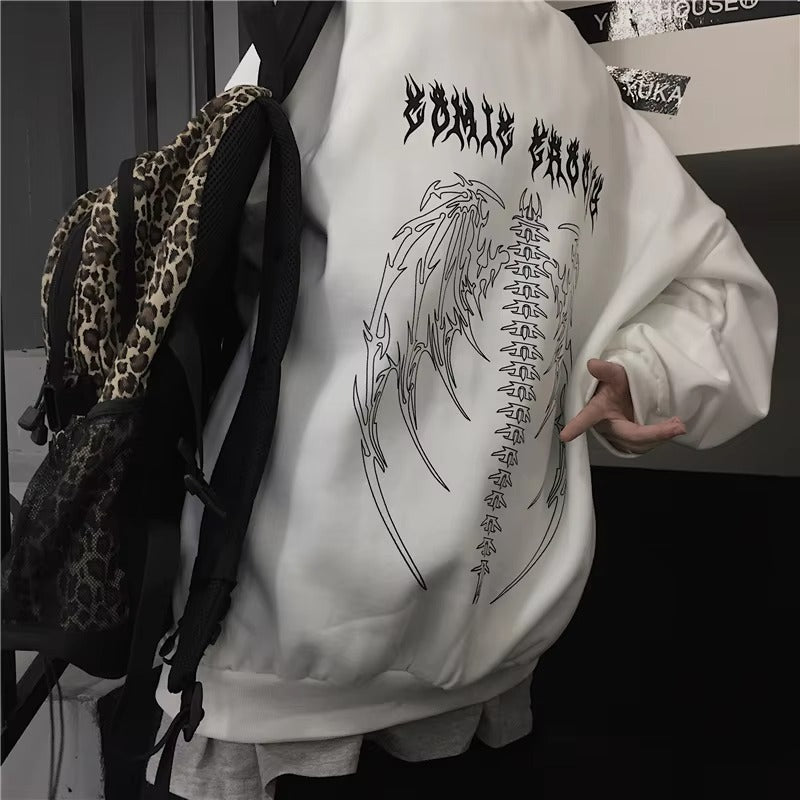 Ronde Hals Y2K HY2K Skelet Hoodie | Gothic Print Pullover voor Mannen & Vrouwen