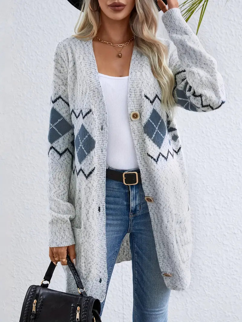 Samantha-Vest met Knoopsluiting en Grafisch Patroon | Stijlvol & Comfortabel