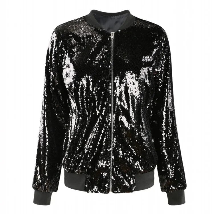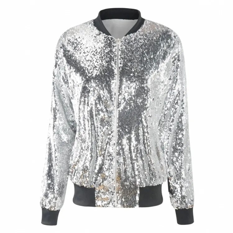 Breng je stijl naar een hoger niveau met onze pailletten jas bomberjack, de perfecte combinatie van glamour en eigentijdse mode