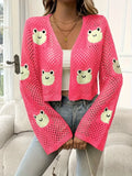 Het Serie Schattige Open Vest met Kikkerpatroon is een speels en uniek kledingstuk dat perfect is voor de modebewuste vrouw die houdt van een vleugje vrolijkheid in haar garderobe