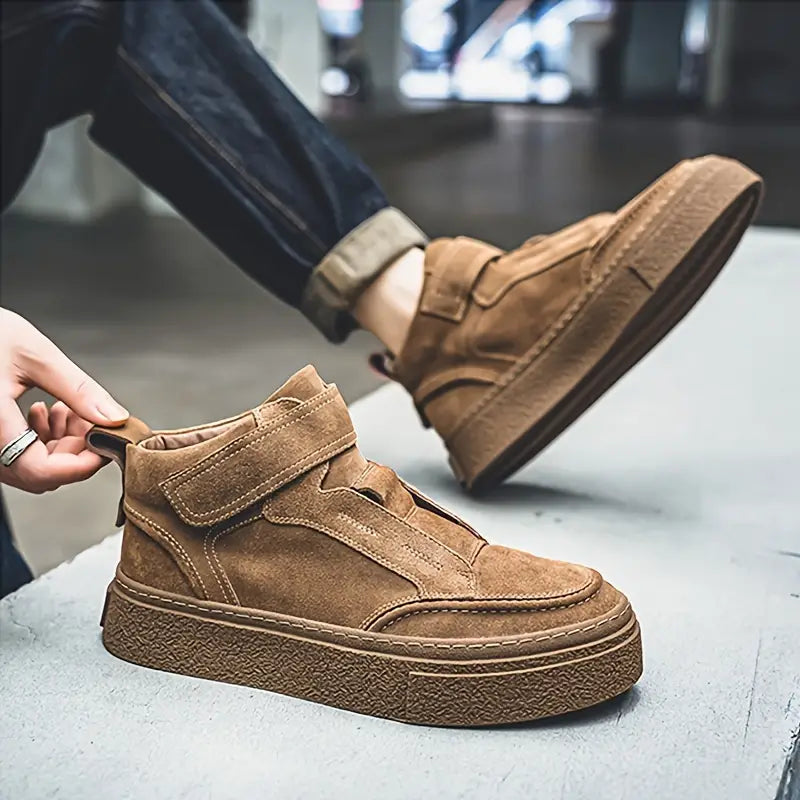 Deze sneakers combineren luxe suèdeleer met een praktische klittenbandsluiting, waardoor ze zowel stijlvol als comfortabel zijn.