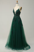 Stijlvolle A-lijn baljurk met spaghettibandjes en vetersluiting - Julia