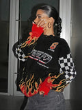 De Tensie Vlampatroon Lange Mouw Casual Sweater voegt een stoere en gedurfde stijl toe aan je dagelijkse outfit