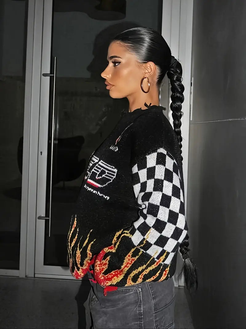 - Stijl: Casual sweater met lange mouwen en gedurfd vlampatroon