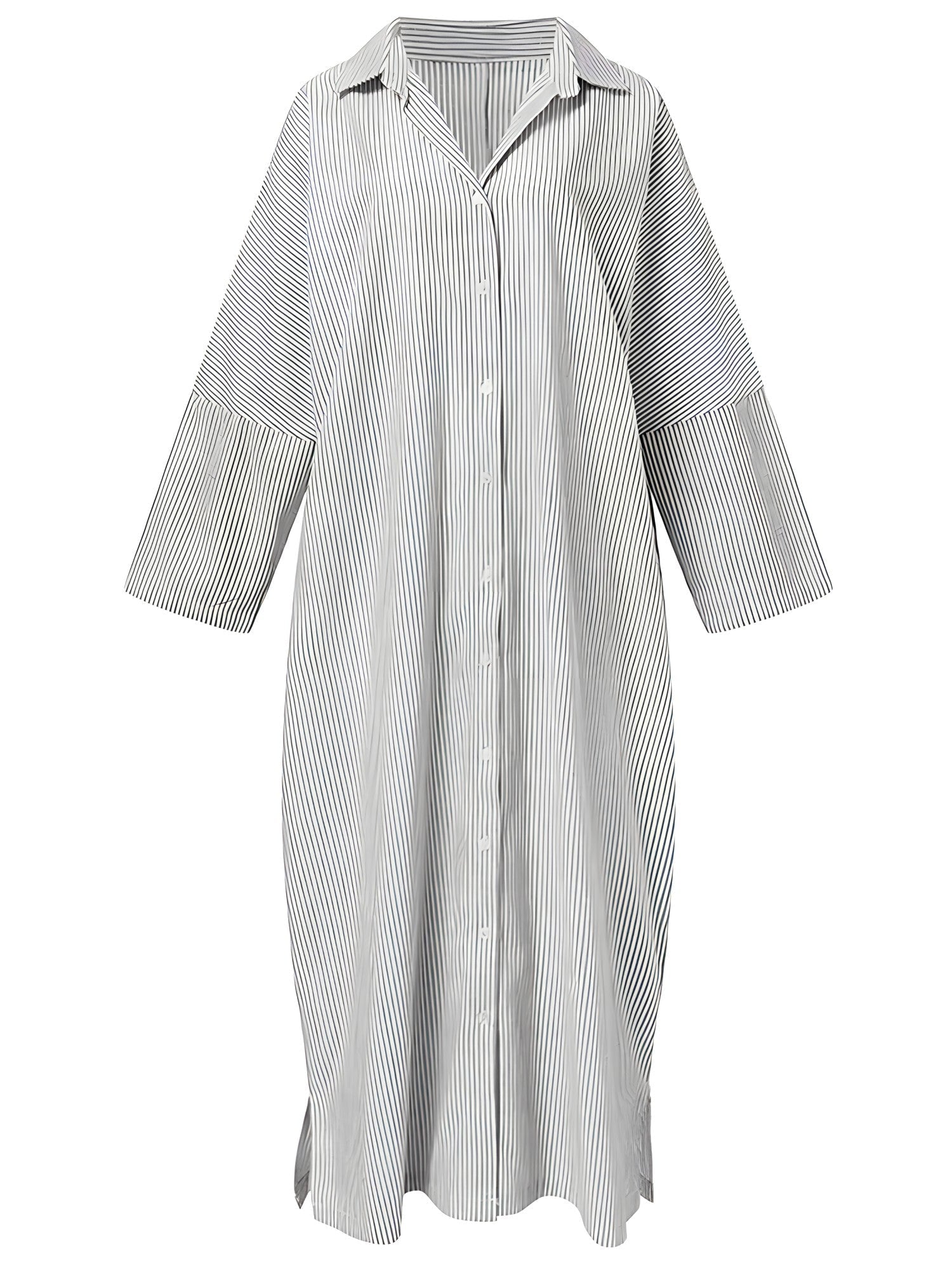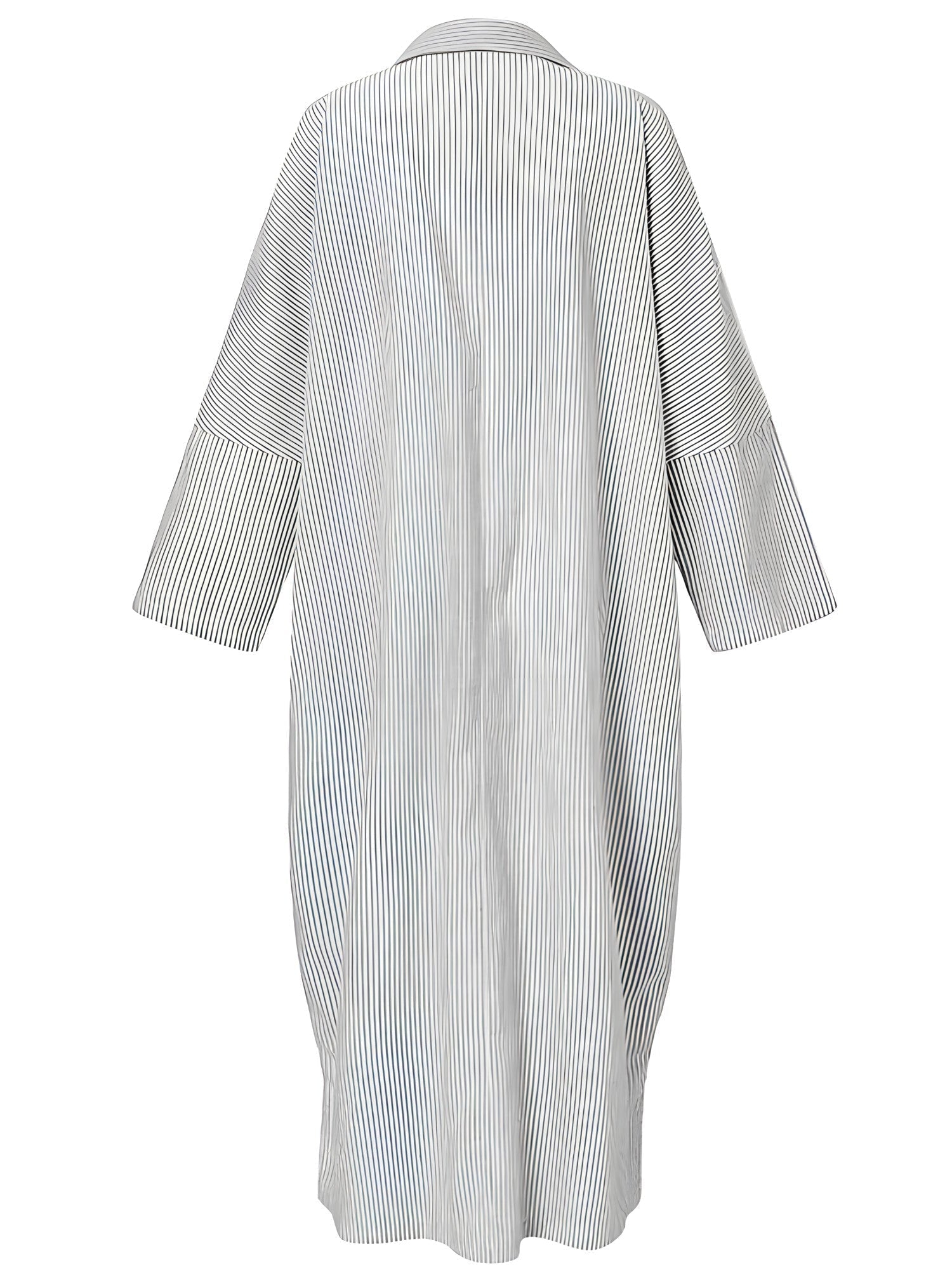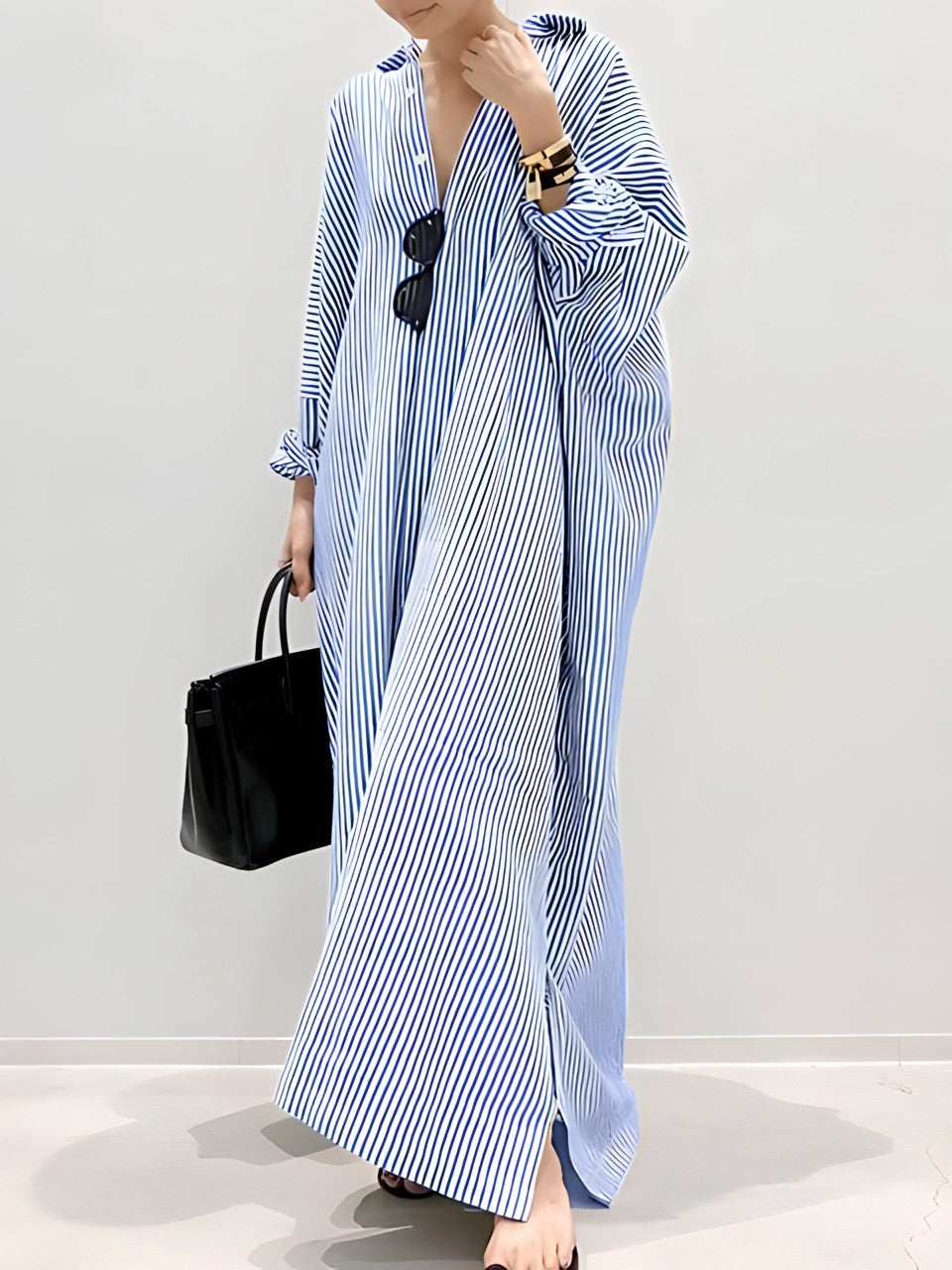 Omarm de essentie van de zomer met onze jurk, een heerlijke combinatie van gestreepte katoen en linnen stof. Deze jurk is ontworpen om je koel, zelfverzekerd en chique te voelen, ongeacht de gelegenheid. Maak je klaar om hoofden te doen omdraaien en een blijvende indruk te maken met deze veelzijdige garderobe essential.