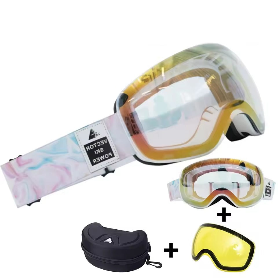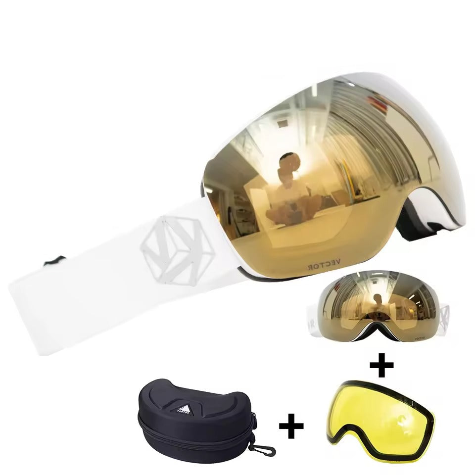 Met de VECTOR Ski Snowboard Goggle Magic geniet je van een ongeëvenaarde skibeleving. Dankzij de innovatieve magnetische lenzen kun je snel en eenvoudig van lens wisselen, wat ideaal is voor veranderende lichtomstandigheden. De sferische spiegel zorgt voor een breder gezichtsveld, terwijl de stevige TPU-frames zorgen voor comfort. Bied maximale UV-bescherming zodat je zorgeloos kan genieten van je wintersport avonturen.
