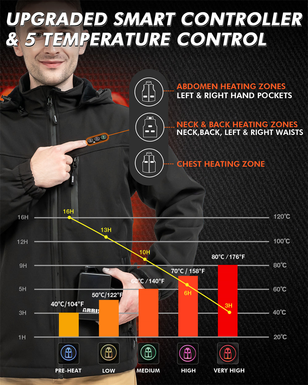 Deze innovatieve jas biedt gerichte warmte op 8 verschillende punten, zodat je in elke situatie heerlijk warm blijft.