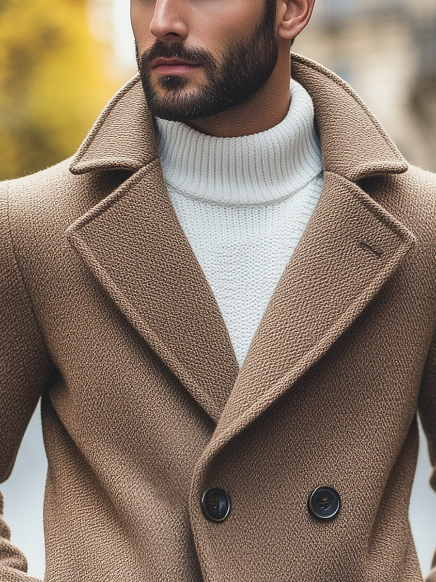 Wollen herenjas met retro kap en dubbele rij knopen - Tijdloze elegantie