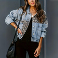 Wysse Jacket - Casual Leopard Patchwork Denim Jasje voor Dames