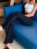 - Flatterend Ontwerp: De hoge taille accentueert je taille en creëert een prachtig silhouet, terwijl de uitlopende pijpen je benen optisch verlengen.