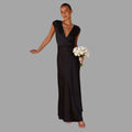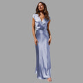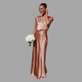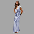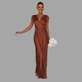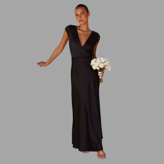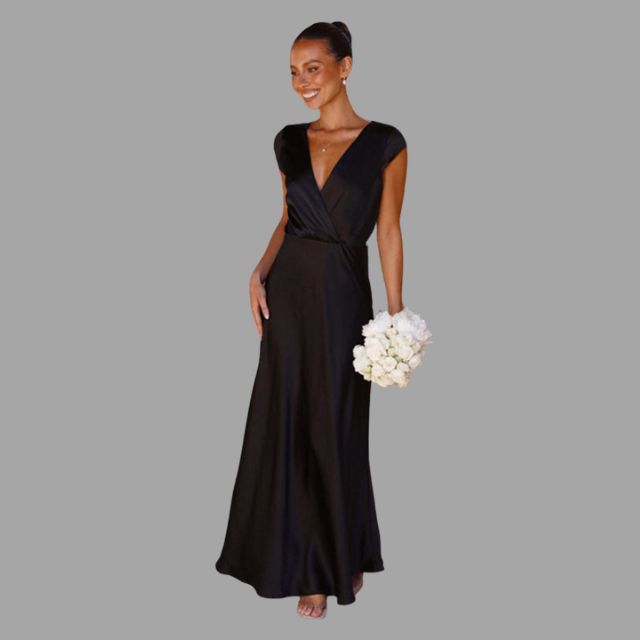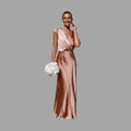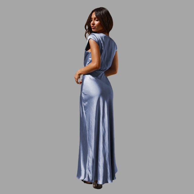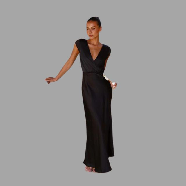 Zavando - Elegante satijnen avondjurk met diepe V-halslijn