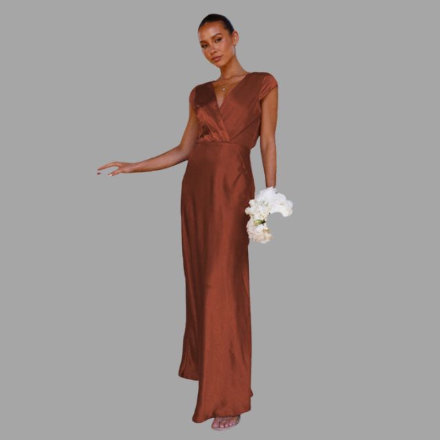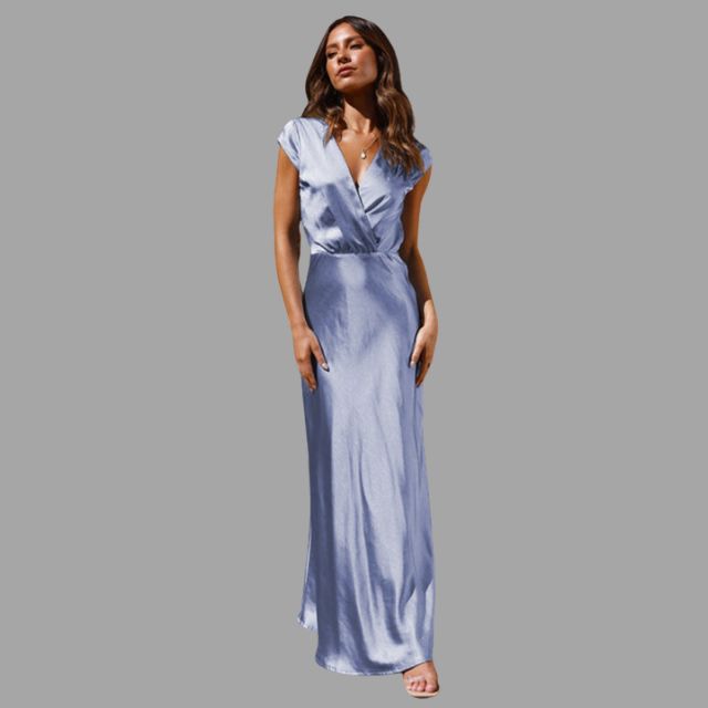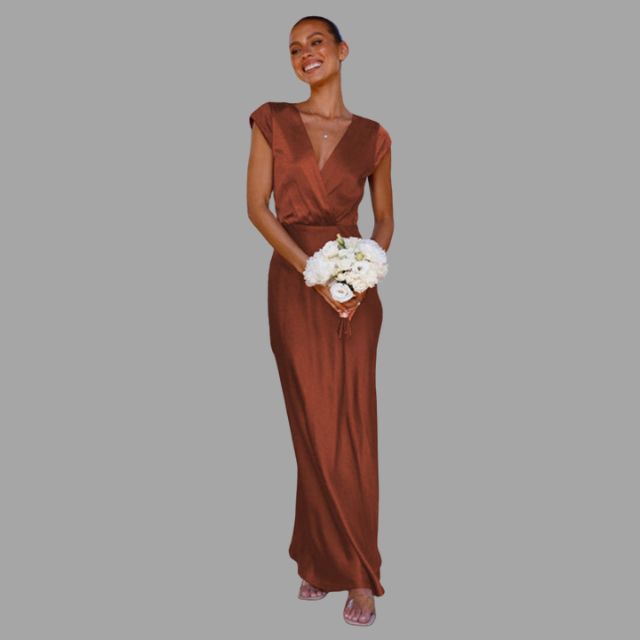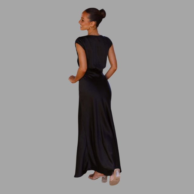 Begin het lente/zomerseizoen 2024 in stijl met onze Zavando - Sophisticated satijnen avondjurk.