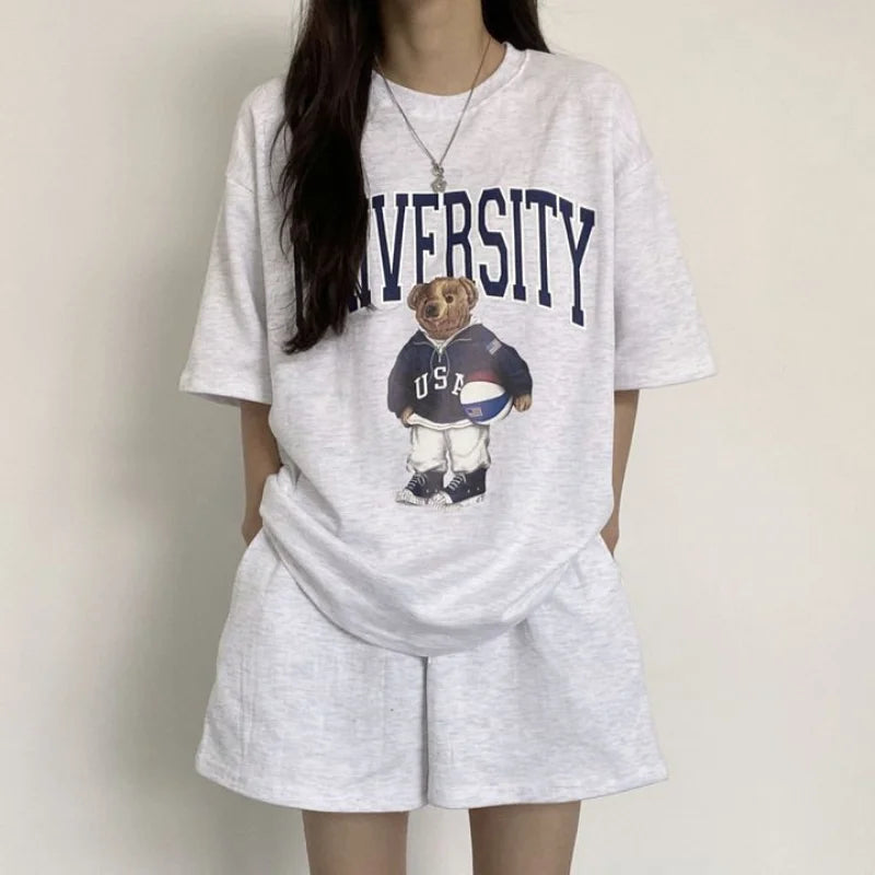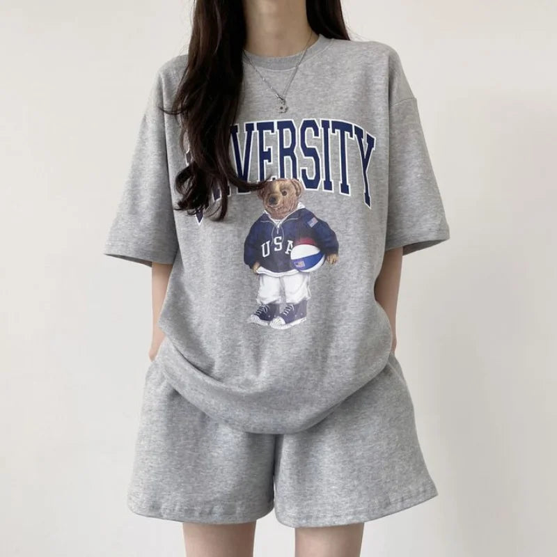 Zomerse Cotton Bear Short Set | Stijlvolle en Comfortabele Zomermode